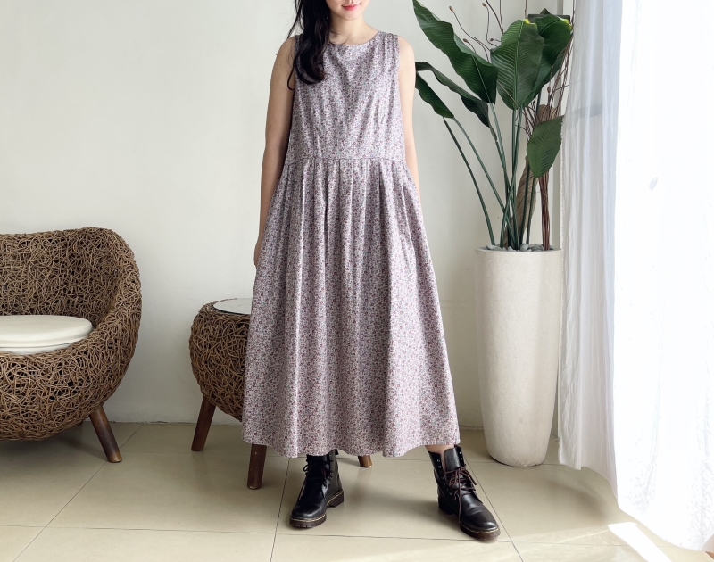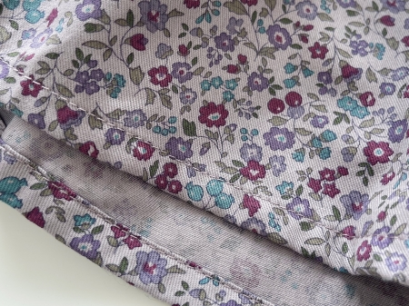 柔らかくてふわっとした素材感です。 ベースカラーはパープルベージュの中間色に小花柄 。 和の色ですと梅染色に近いお色になります。 透け感の少ない綿ですが、薄手綿素材のペチコートをおつけいたします。