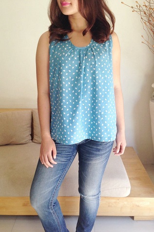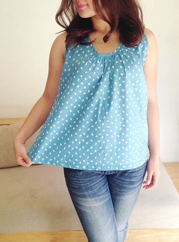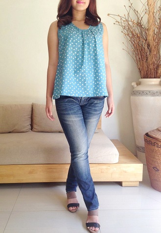 Cotton Batik Sleevless Gather Tops