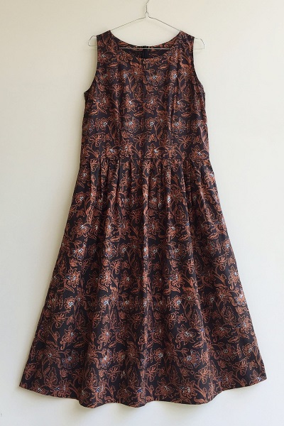 黒ベースにオレンジがかったブラウンで線を描き、花模様の所々に