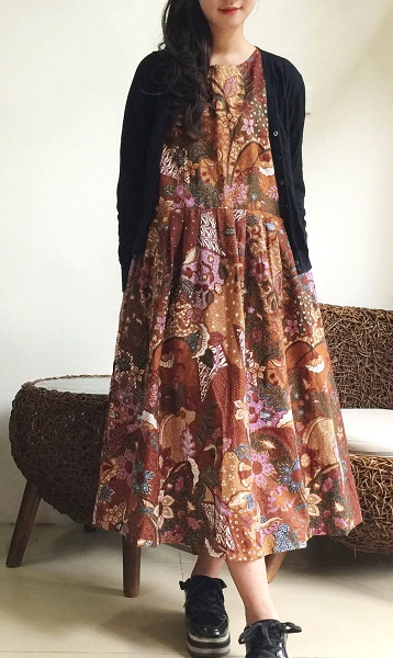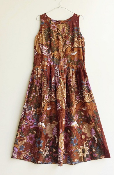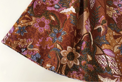 バティックらしい個性的な柄粋、所々に入った紫ピンク色の花の