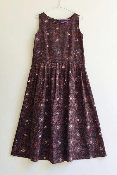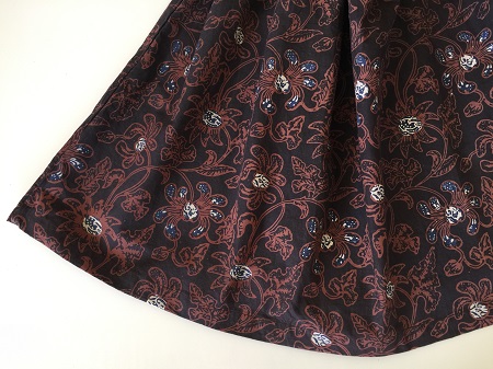 黒ベースにブラウンで線を描き、紺色が入った花模様です。