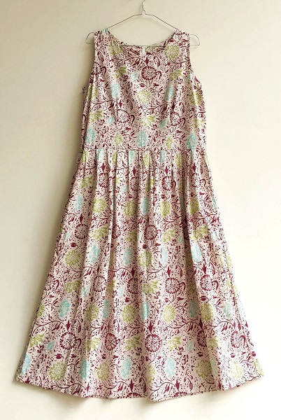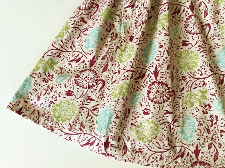 白ベースに黄緑、水色、マロンカラーの花モチーフです。