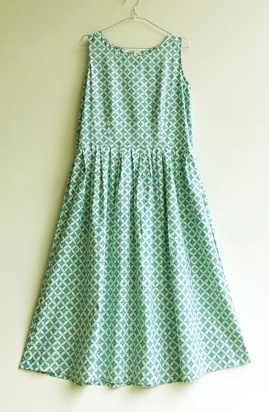 明るめのミントグリーンが爽やかでとても綺麗な色合いのワンピースです。