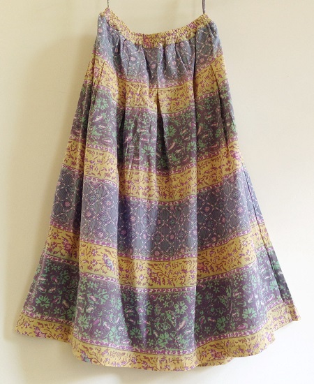 ティア―ドスカートのように横ストライプごとに違う柄が入っています。