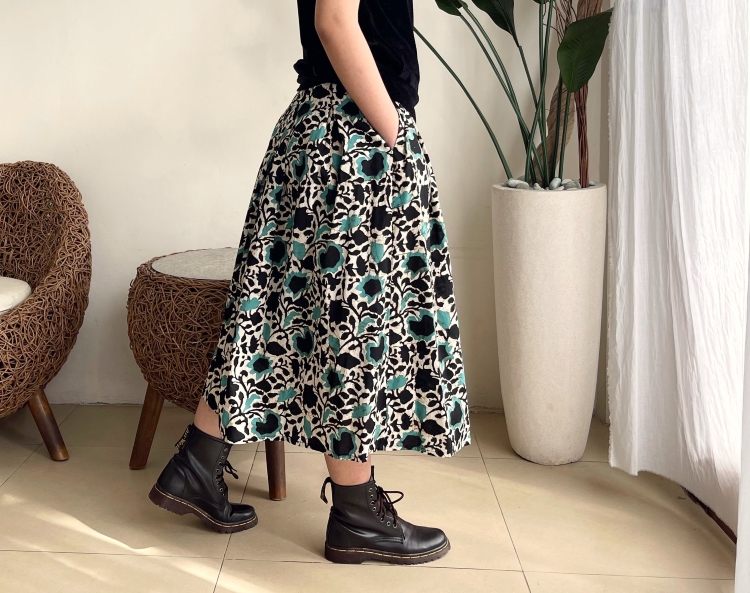 グリーンとブラックの花模様。 ベースにブラウンの地模様が入っています。
