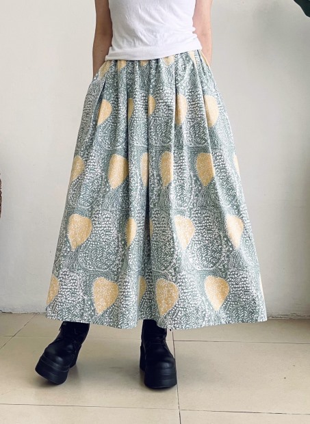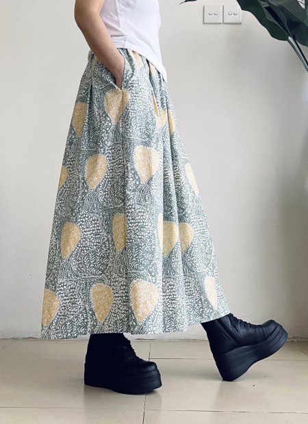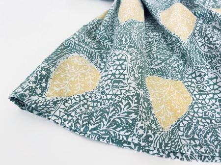 淡いグリーンの細かな地模様に黄色のリーフ柄