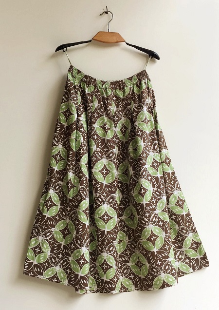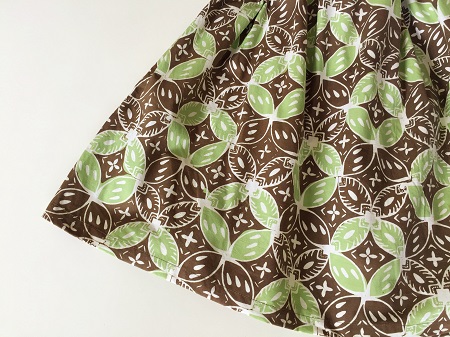 ブラウンと黄緑色のコンビネーションが花のようで素敵なバティックです。