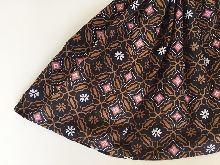 所々に入ったピンクや白い花のモチーフも大人可愛いバティックワンピースです。
