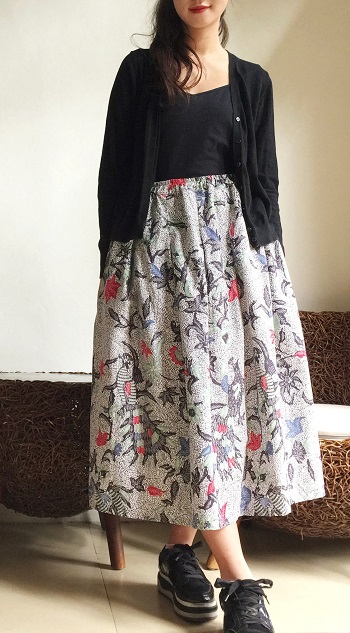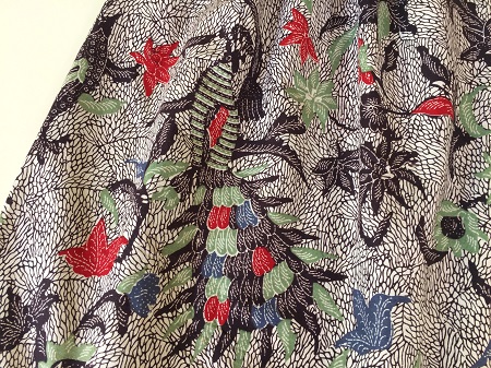 個性的なバティックらしい描き方の花鳥柄です。