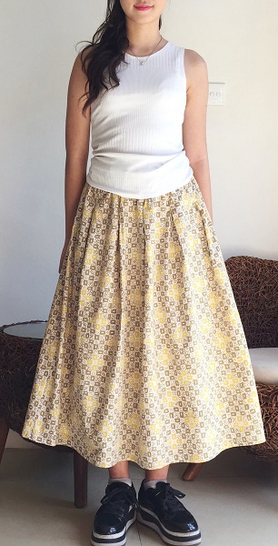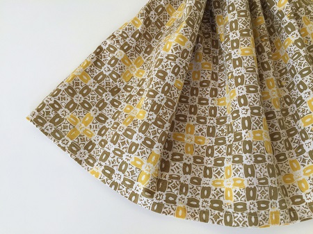 イエローとカーキの優しい色合いの連続柄です。