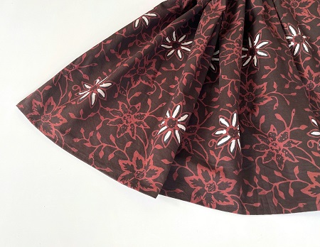 赤味ブラウンの、白抜きの花模様の連続柄です。