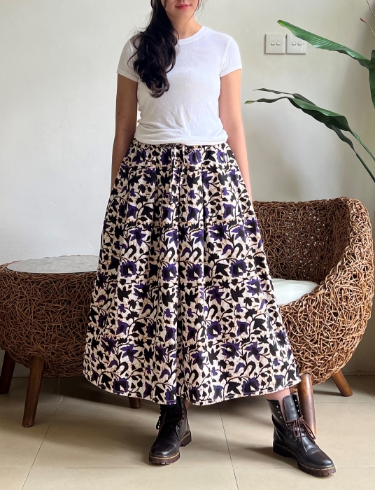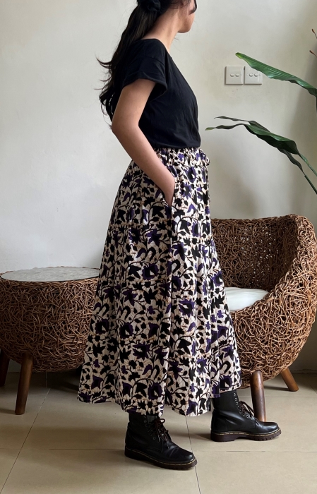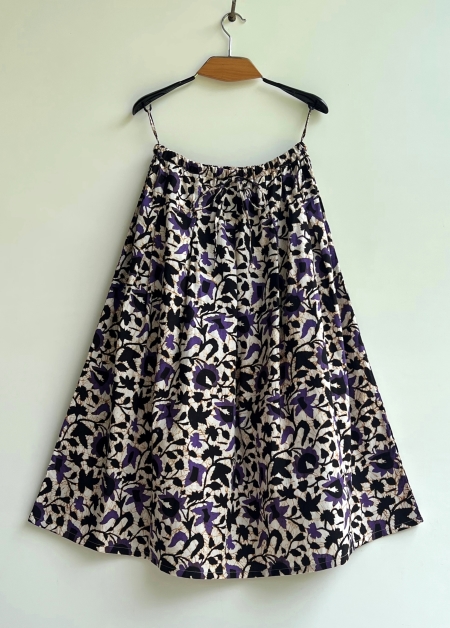 ブラックとパープルカラーの花模様。 ベースにブラウンの地模様が入っています。