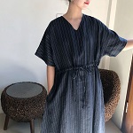 ドルマン袖ワンピース(紺ストライプ)