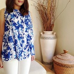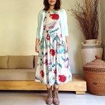 ティア―ドワンピース(ブルー花)