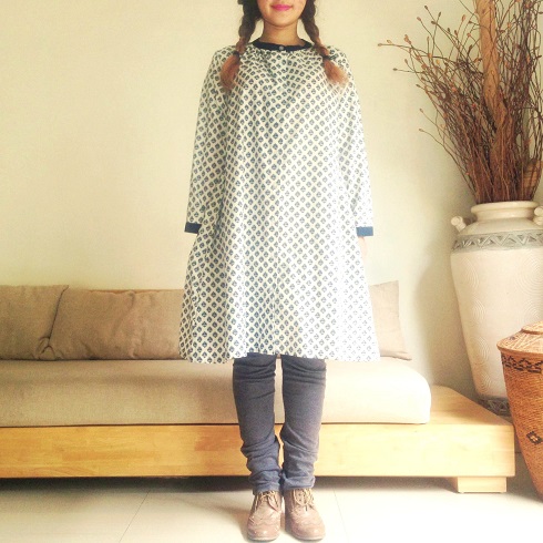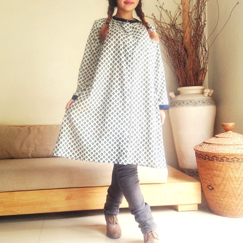 裾幅を広くたっぷりと生地を使ったので、ふんわりと裾広がりのデザインが