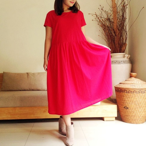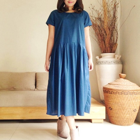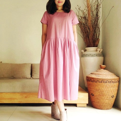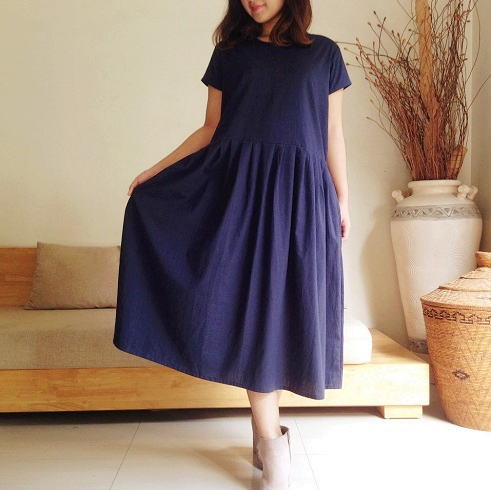 ウエストには絞りなどを入れていませんので、着心地よく、さらり、ストンと