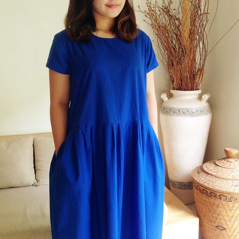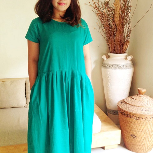 綺麗な色の生地を使って、シンプルでシルエットがとても綺麗なワンピースが仕上がりました。
