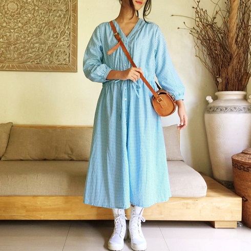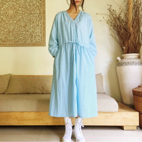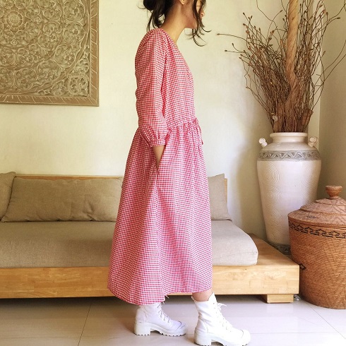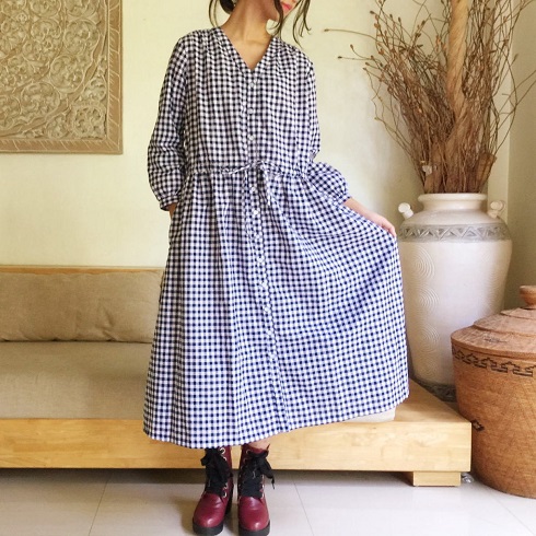 Cotton Long Ribbon One-Piece(ギンガムチェック)