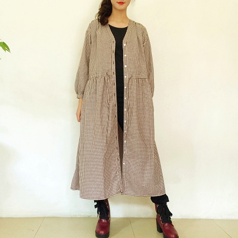 長めの丈で身幅もゆったりめに取っています。 インに重ね着も十分できるサイズ感になっていますので、羽織として着ていただいても素敵です。