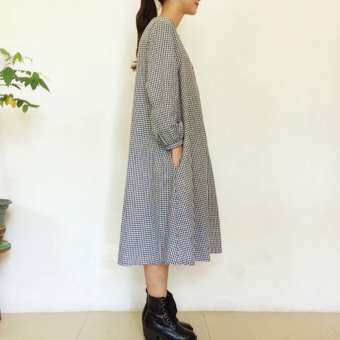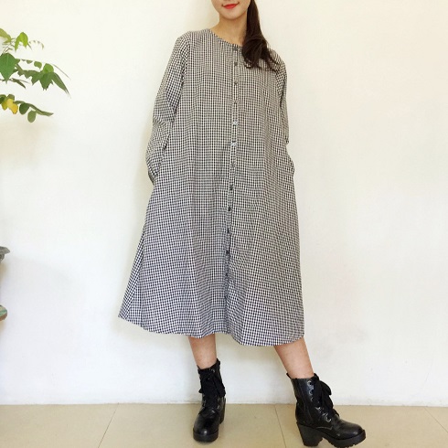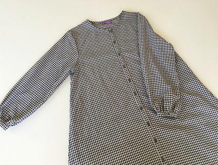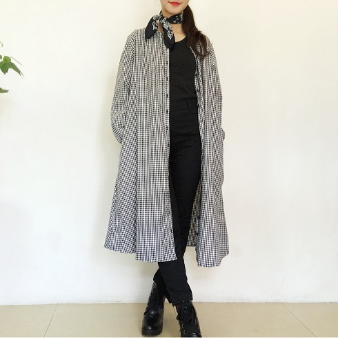コットン素材のギンガムチェック(黒)とタータンチェックの2種類でご紹介いたします♪              モデルの身長160cm