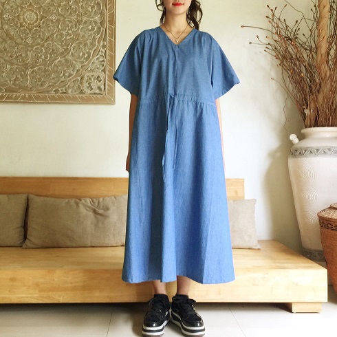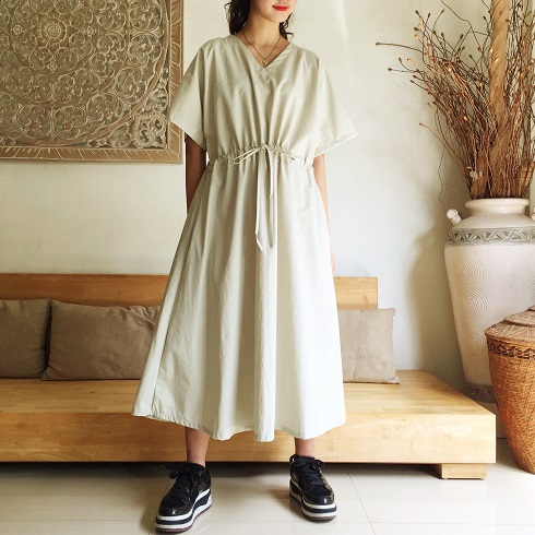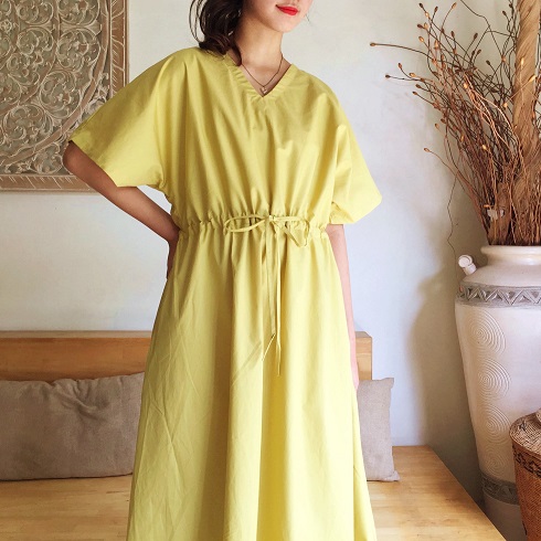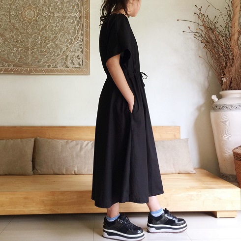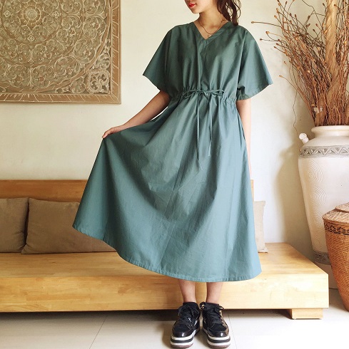 Cotton素材ドルマン風フレアーワンピース