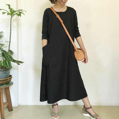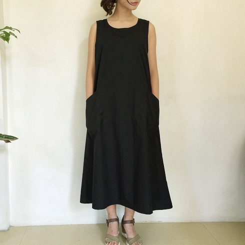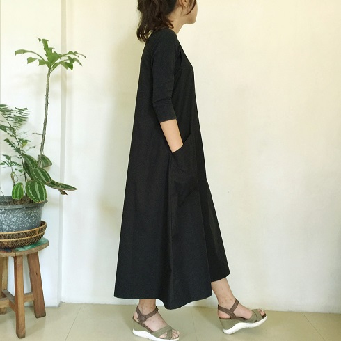 柔らかなコットン素材。 斜めについた大きなポケットがとても可愛いロングワンピースです♪