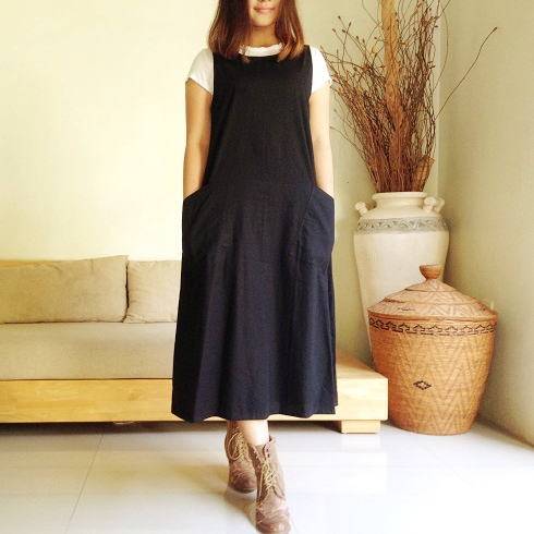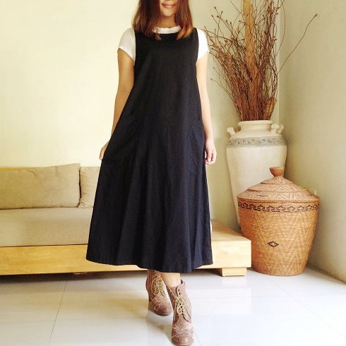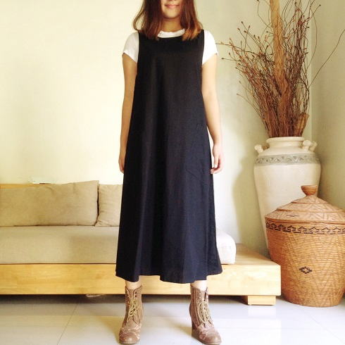 インナーを合わせたり、何か羽織物を着たり、もちろん1枚でワンピースとしても素敵です♪ バックスタイルにボタンが1個ついています。   モデルの身長160cm