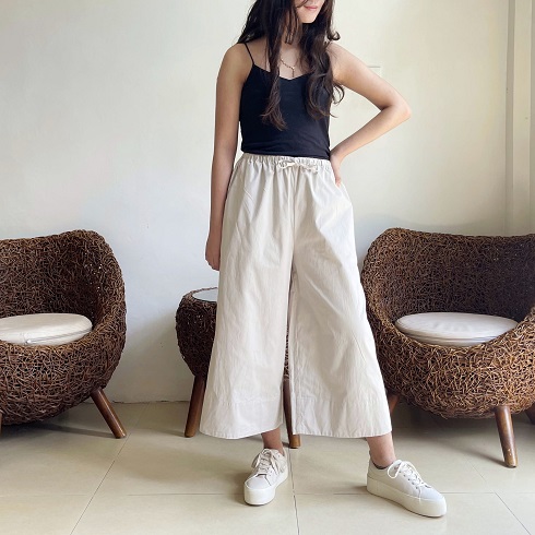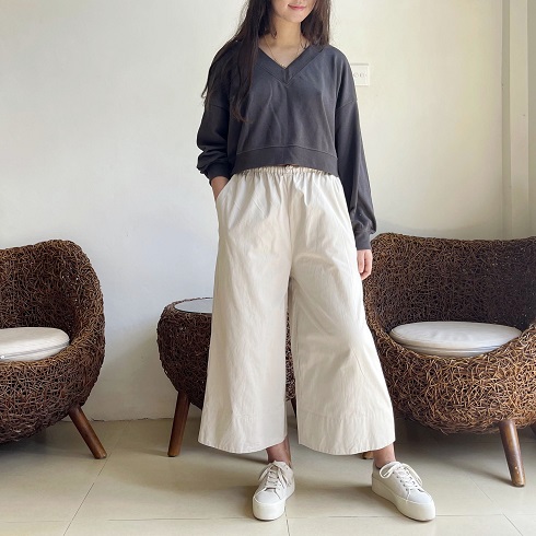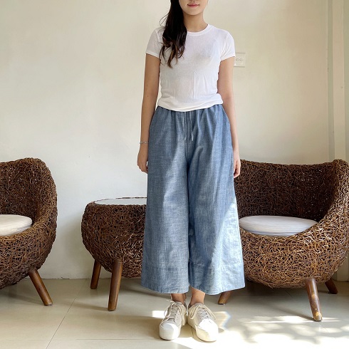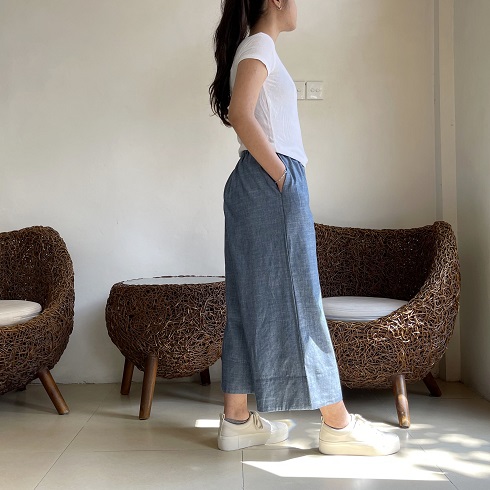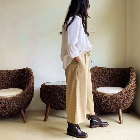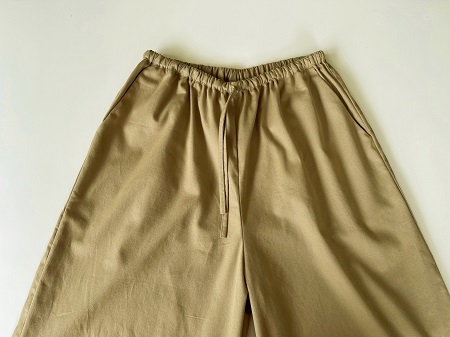 素材について 「コットンポプリンツイル」 という生地を使用しています。 チノパンでお馴染みのチノクロスはツイル生地になりまして、こちらと同類の素材です。 しっかりとした地厚でとても柔らかく、肌触りの良い生地です。 季節に関係なく1年中はいていただけるような素材なので、長いシーズン楽しんで いただけたら幸いです。 丈感 身長162㎝のモデルがはいた場合、80㎝丈で7分丈、85㎝丈で8分丈ほどになります。 白シャツは80㎝を、黒いフーディーを合わせている画像は85㎝丈をはいています。 お持ちのパンツの長さと是非比べてみてください。 |