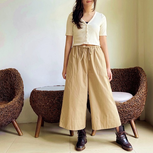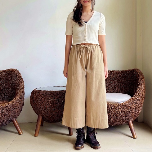 お家でもお出かにも着心地が良く楽チン。 柔らかで肌触りの良いパンツです♪ ![]() ![]() ![]() ![]() ![]() ![]() ![]() ![]() パンツのシルエットはゆったりとしたワイドパンツ、 丈感は動きやすい長さで8分丈ほどになります。 股上も深めに取っていますので、ゆったりとルーズに着ていただけます。 ウエストはぐるりゴムとになっていて締め付け感がないので、お家でも楽ちん。 そのままお出かけ着としても可愛く、良いかと思います♪ モデルはショートブーツを合わせていますがスニーカーにも良く似合います。 是非お試しください。 モデルの身長:162cm |