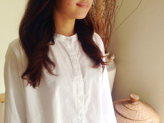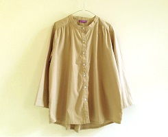 シンプルだけどギャザーが入ってゆったりしたサイズ感、着心地の良い綿シャツです。