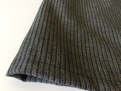 濃いグレーカラー、生地の織り目がストライプに入った立体的な素材です。