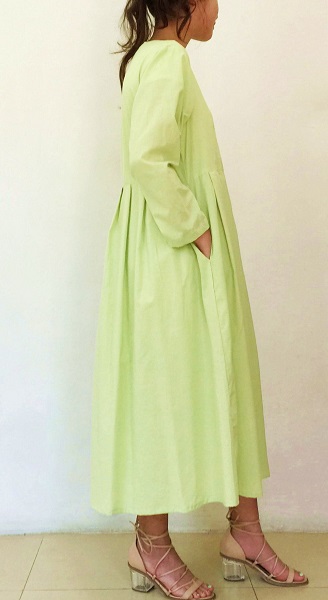 黄色に近いライムグリーンです。 とても綺麗な色なのでリゾート地やご旅行先への羽織物にも良いかと思います♪