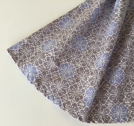グレーと水色の花モチーフがづらりと連続柄になった模様です。