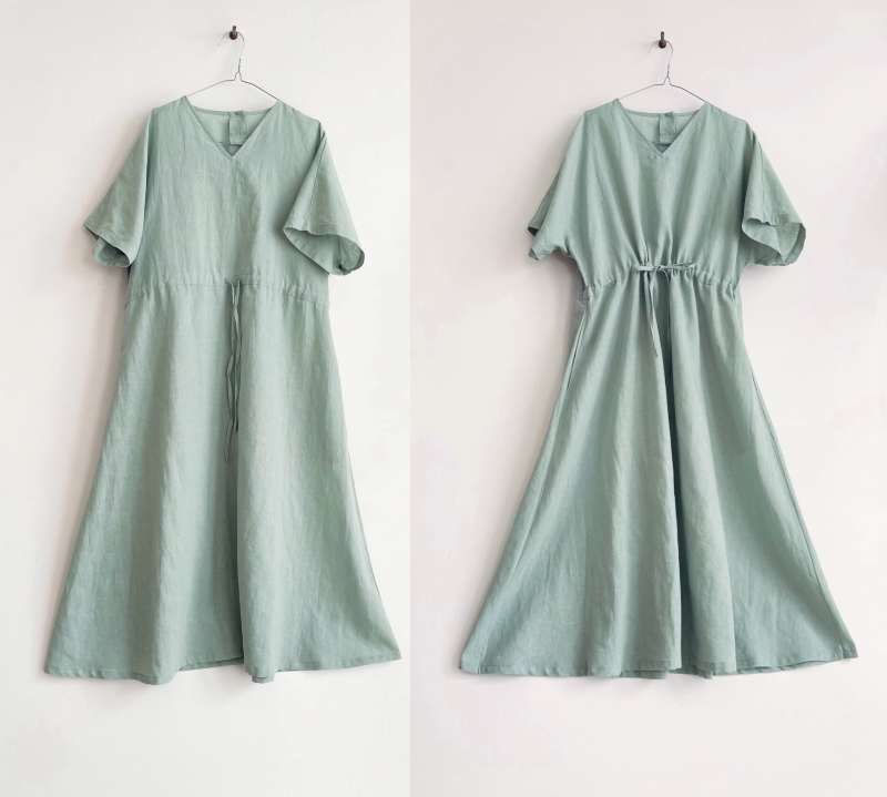 素材 コットンリネン 天然素材でナチュラルな風合い。 お洗濯後のリネン特有のくしゅくしゅっとした 洗いざらし感も良い雰囲気があります。 やや薄手でこれからの暑い季節にぴったりな素材です。