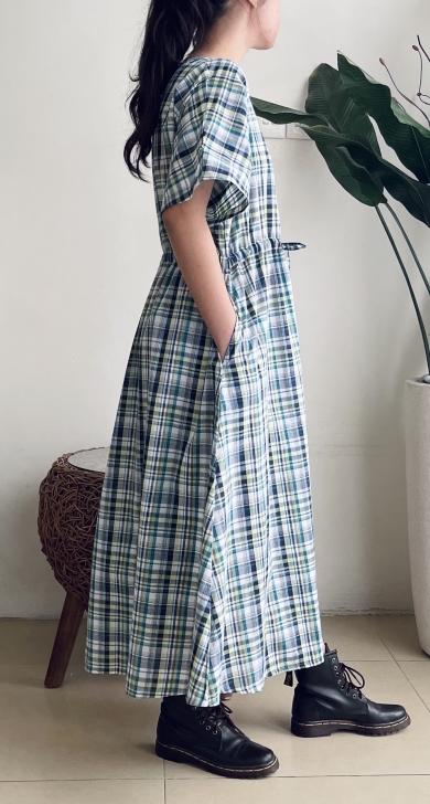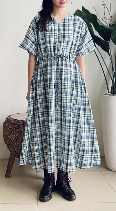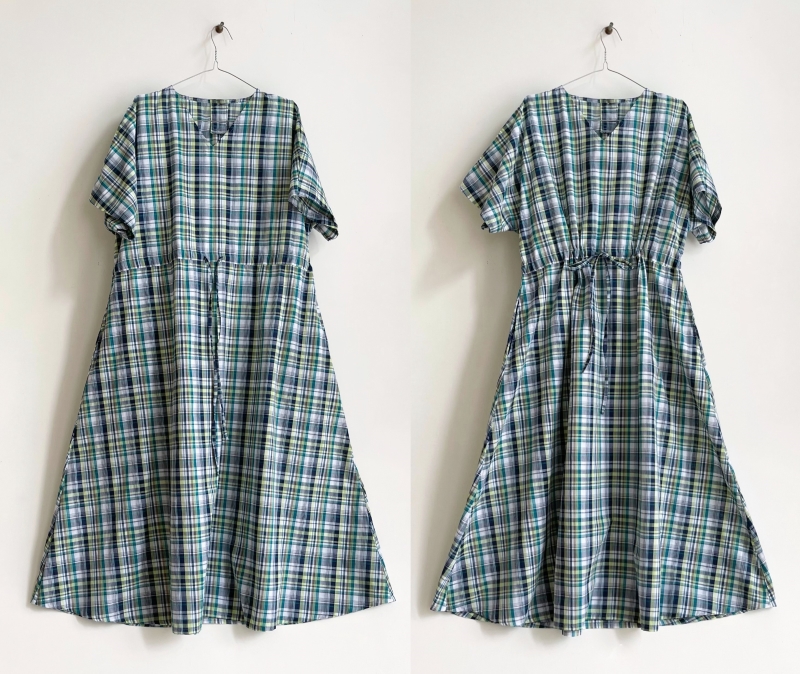 とても軽い着心地で涼しく暑い夏にはぴったりな素材です。 またシワになりにくく扱いやすい生地です。 生地の厚さは夏用の一般的な綿素材ですが 透け感がありますのでインナーは必須になります。 薄手綿素材のペチコートをおつけいたします。 お色は紺や黄色、グリーンなどのとても綺麗な マドラスチェックです。