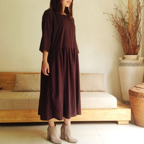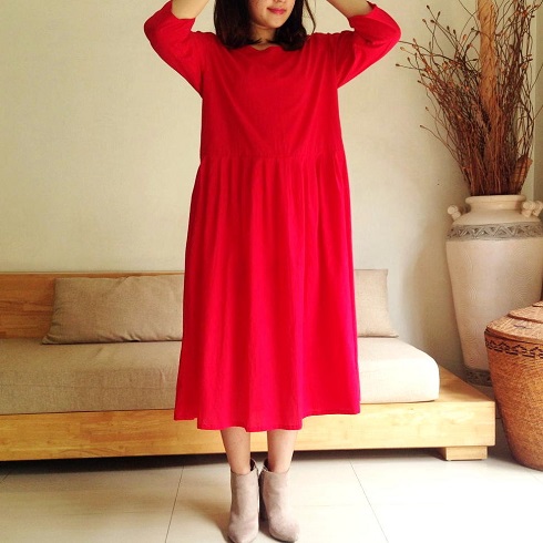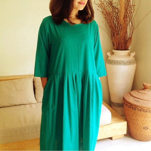 Cotton Long Pleated One-Piece