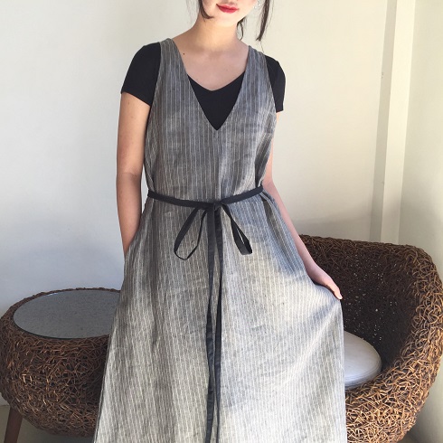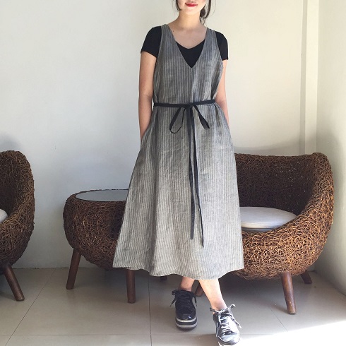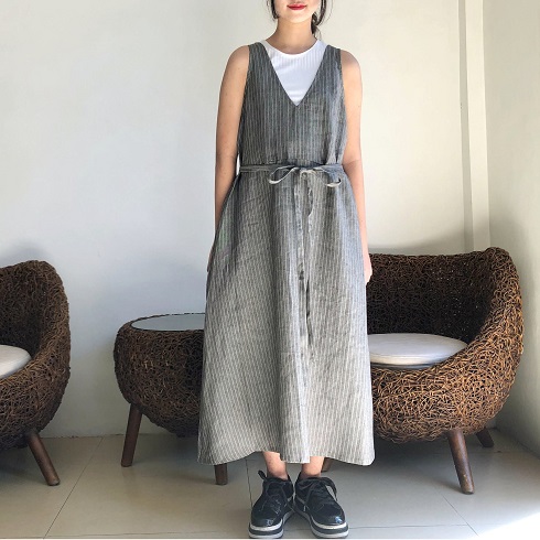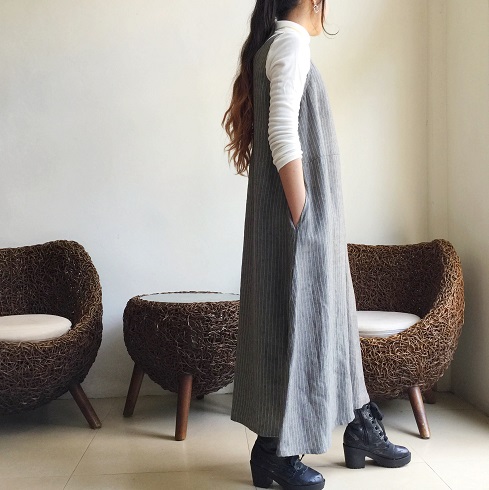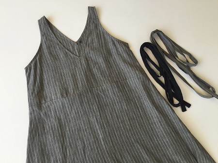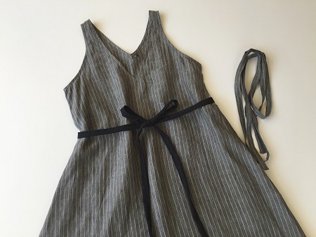 同素材のリボンと黒のリボンの2本おつけいたします。 リボンをつけずそのままストンと着ていただいても可愛いですし、リボンを結んでいただくとより女性らしい雰囲気を楽しめます。 細くて長めのリボンは前か後ろで結んでいただきます。 かなり長めに垂らしていただくとポイントになり素敵です。 ウエストにリボン通しはついていません。 薄手でもなく厚手でもない調度良い生地感で、春夏にはTシャツやノースリーブトップスなどと、涼しくなったらハイネックなどの暖かなインナーの上に重ねて着ていただいても素敵です。 ![]() ![]() |
