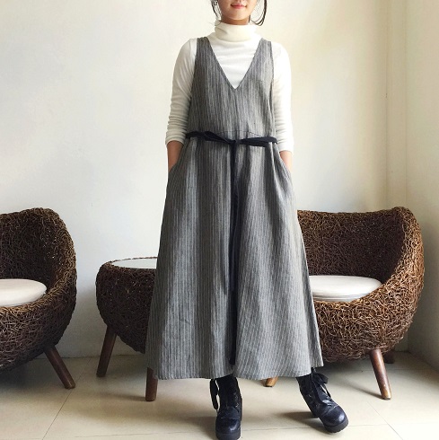 インナー次第でいろいろな雰囲気が楽しめるサロペットスカート(ジャンパースカート)です♪ ![]() ![]() ![]() ![]() ![]() ![]() モデルの身長:162cm ----------------------------------------------------------------------------------------------------------------------- 深めVカットの襟元、バックスタイルもVカットになっていて胸元をスッキリと綺麗に見せてくれます。 ウエストちょうどかややハイウエストの位置に替えがあり、裾までAラインに広がるすっきりとしたシルエットです。 画像のモデルはTシャツ等を着ていますが、薄手のニットやハイネック、ノースリーブトップスなど何にでも良く似合います♪ 季節感なく1年中着ていただける素材なので、色々なアイテムを合わせて長いシーズン楽しんでいただけたら幸いです。 合わせるインナーや小物によっても雰囲気が変わるので、いろいろなアレンジも楽しいスカートワンピースです♪ 是非1度お試しください。 ![]() ![]() |
