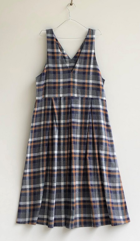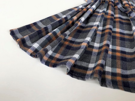 グレーベースに紺、オレンジ、ブルーグリーン、白のタータンチェック柄
