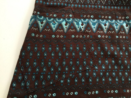 左右についた四角いポケットをあえて斜めに縫い付けた所なども、ちょっとした可愛い