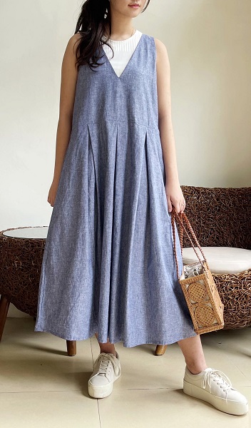 コットンリネンシャンブレー素材。