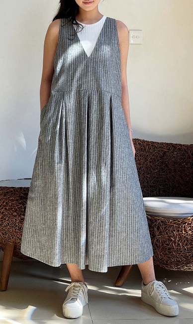 お色はグレーベースに白いストライプ。