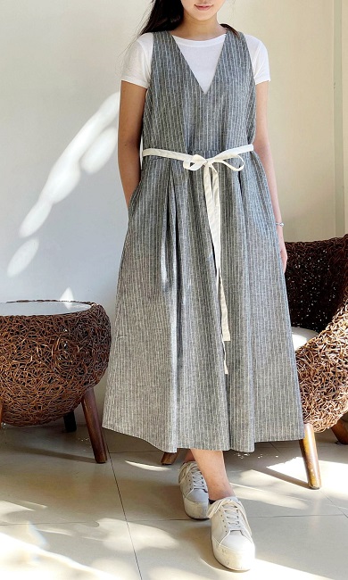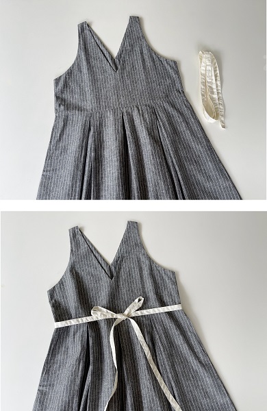 コットンリネンシャンブレー素材。