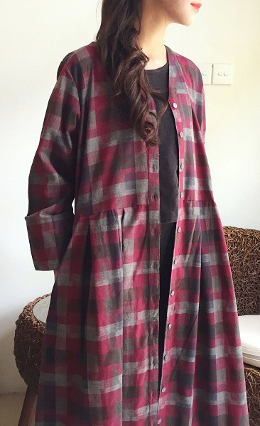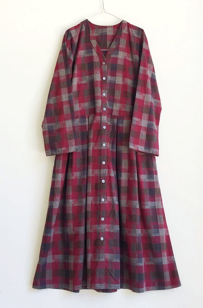 赤、グレー、ブラウン、などの変形チェック柄です。