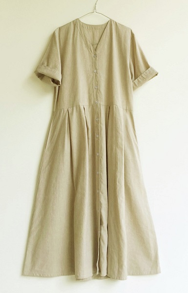 綿シャツに近い風合いの綿麻素材で、ベージュや生成り色