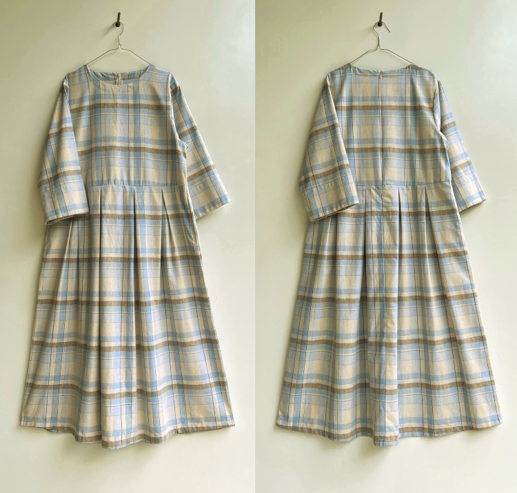 生成り色ベースにブラウンX水色のチェック柄です。