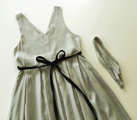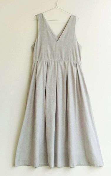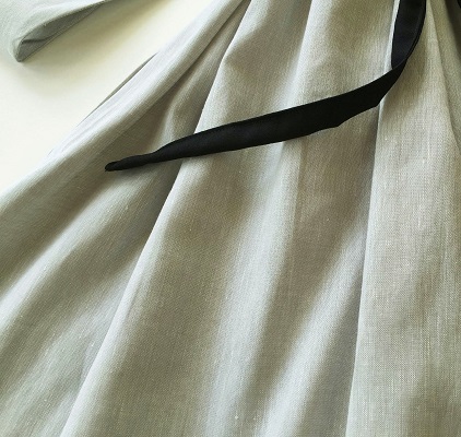 コットンリネンシャンブレー素材。しなやかでと柔らかさもある上品な雰囲気の素材です。