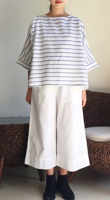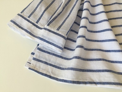 ホワイトベースに紺色のストライプ柄、爽やかな印象です。