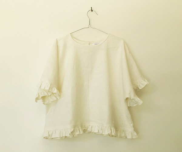 コットン混のコットンリネン素材。お色はクリームがかったオフホワイトです。