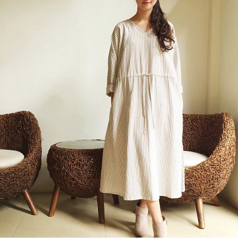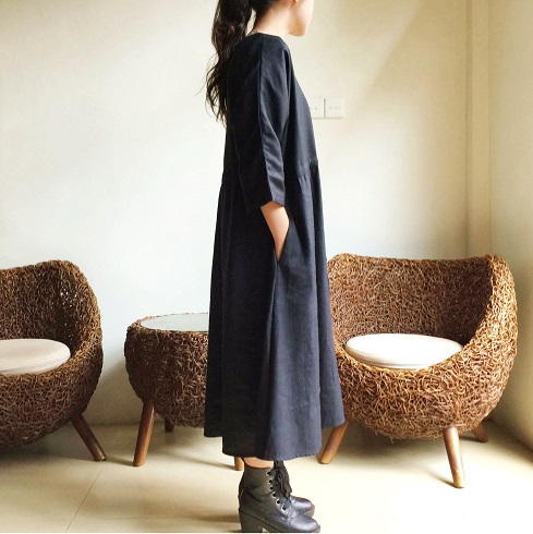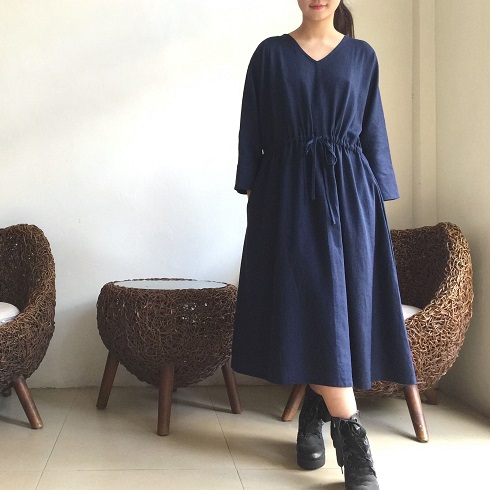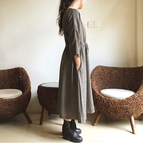 Cotton Linen素材ドルマン風フレアーワンピース